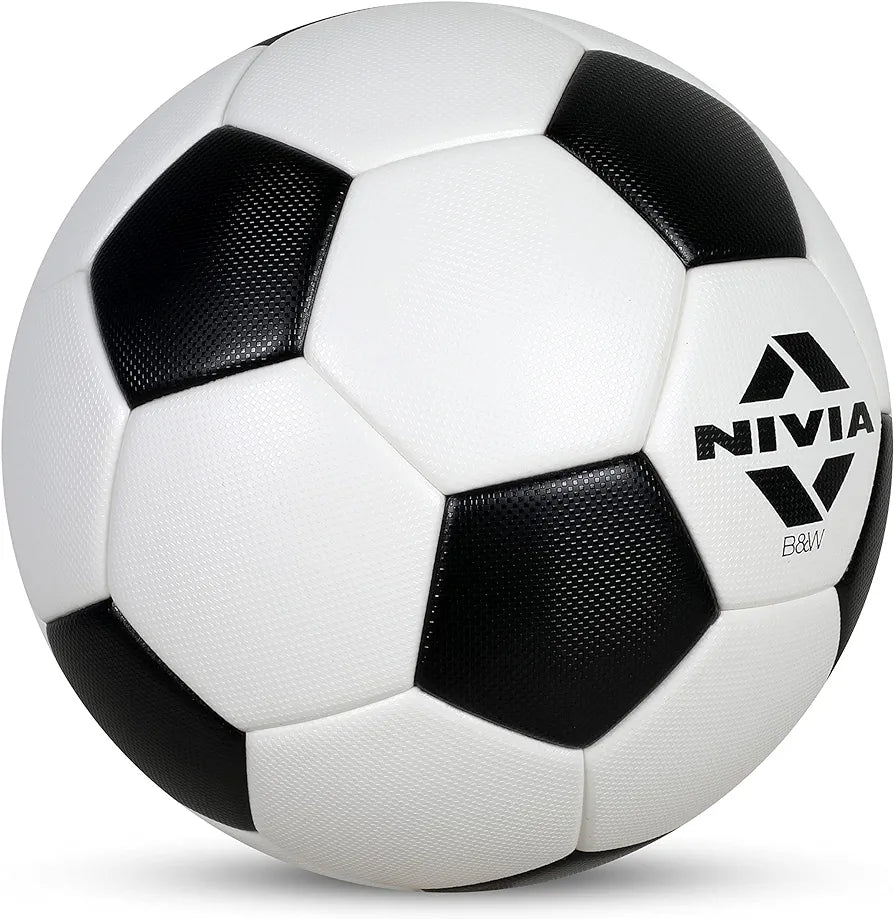 Nivia Football, B & W Football, PU Football, 32 Panel Soft & Wet Ground, Hard Ground, International Match Ball, Suitable for Men & Women Size -5, Colour- Black & White.