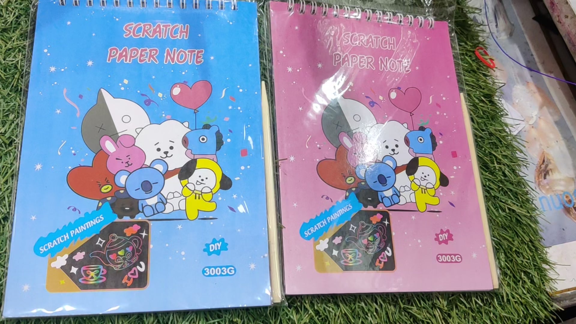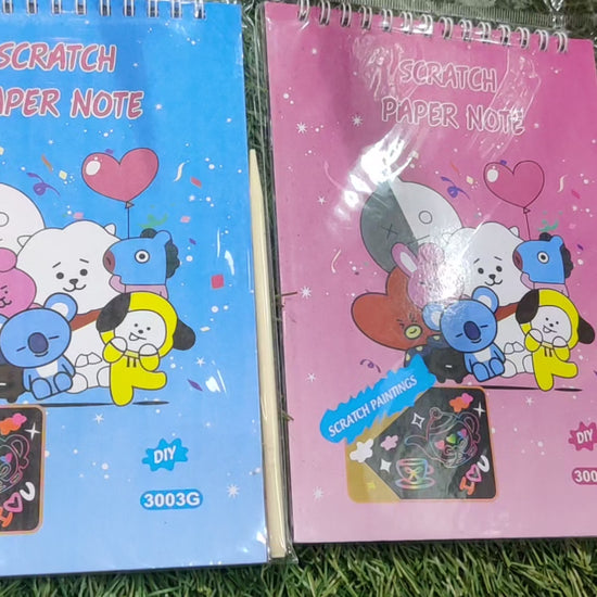 BTS BT21 Theme 2 Pcs Rainbow Colored Scratch Art Notebook. * 8 Black pages made with the finest paper with a rainbow of colors hidden underneath. * Simply scratch off the black coating with the included wooden stylus to reveal the colors underneath. * Hours of fun without the pitfalls of staring at an electronic screen. Keep the kids creative, busy and away from iPads and smartphones. * Use for multiple purposes, doodle, jot notes, create cards, sketch, draw, trace and more! * The perfect outlet for your children's artistic thoughts. The no mess, no scissors creative scribble can be magical art, kids can spend their valuable time in spending in this safe art. * The perfect travel companion for any child and hours of old school fun. * Dimension of each book: 20 * 14cms (8 * 6 Inch)